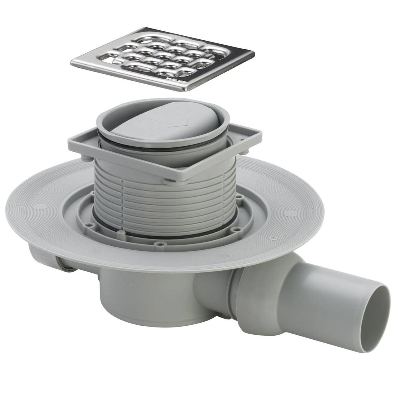 Трап с сухим затвором VIEGA ф50, нерж., решетка 100*100, горизонт. 583217